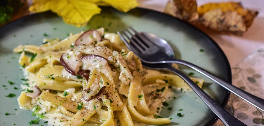 Паппарделле це широкі плоскі макарони, які ефектно виглядають. Купити таку пасту можна у великих супермаркетах чи маркетплейсах. Приготування паппарделле з білими грибами 1․ Поставте воду на макарони. 2․ Білі гриби вимийте, очистіть та наріжте середніми шматочками. 3․ Дрібно наріжте цибулю та часник, обсмажте на розігрітій сковороді з оливковою олією. 4․ У киплячу воду викладіть паппарделле […]