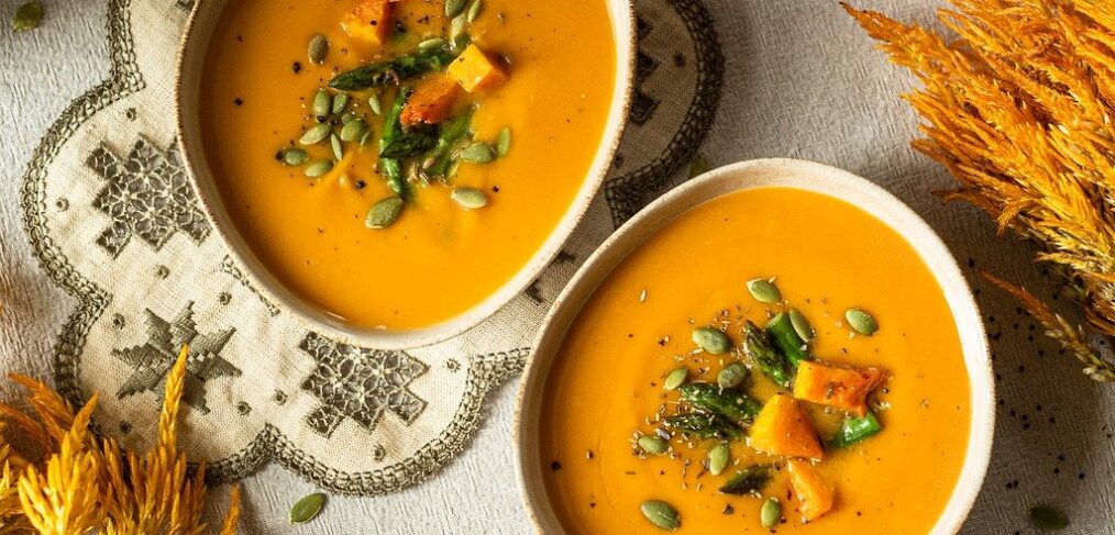 Прянощі роблять і без того смачний суп ще цікавішим і ароматнішим. Приготування простого гарбузового крем-супа з куркумою та коріандром 1․ Наріжте гарбуз кубиками розміром 3-4 см, а цибуля – дрібними шматочками. Часник пропустіть через прес. 2․ Складіть підготовлені овочі в каструлю. Залийте бульйоном, посипте куркумою з коріандром, доведіть до кипіння і варіть на середньому вогні […]