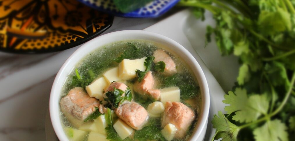 Велика кількість зелені та східні прянощі надають цій легкій страві у середземноморському стилі чарівний аромат. Приготування супа на обід з лосося з овочами 1․ Подрібніть зелену цибулю, кріп та часник. Наріжте картопля та морква середніми кубиками, а болгарський перець – дрібними. 2․ У каструлі розігрійте оливкову олію. Обсмажуйте зелену цибулю, часник та болгарський перець 2–3 […]