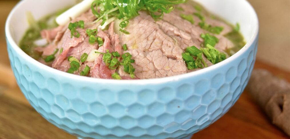В’єтнамський суп з насиченим бульйоном, рисовою локшиною та яловичиною. Приготування В’єтнамського Супа Фо Бо 1․ Складіть кістки в каструлю, наповнену водою. Доведіть до кипіння та нагрівайте 5 хвилин. Злийте рідину, промийте кістки та каструлю. 2․ Крупно наріжте цибулю та імбир. Викладіть на лист, застелений фольгою, і запікайте при 220 °C близько 10 хвилин до рум’яності. […]